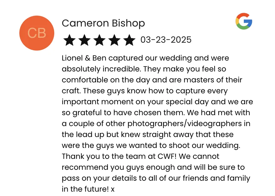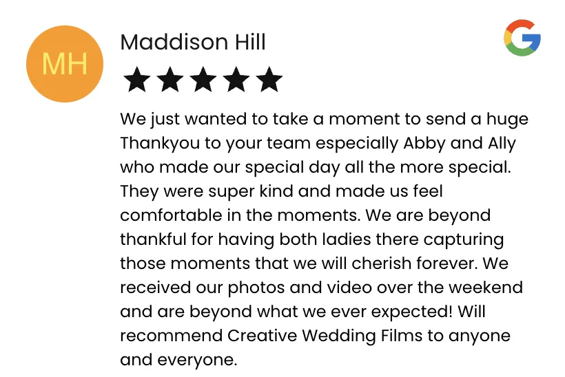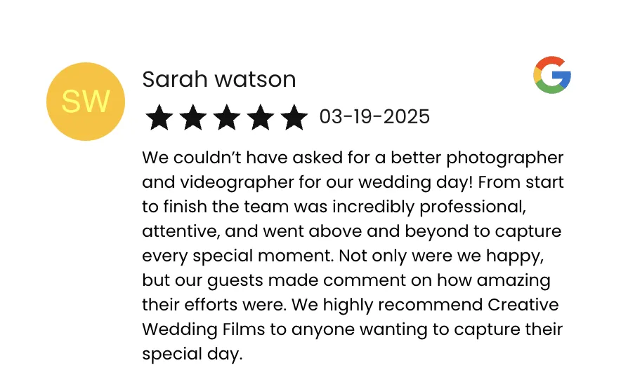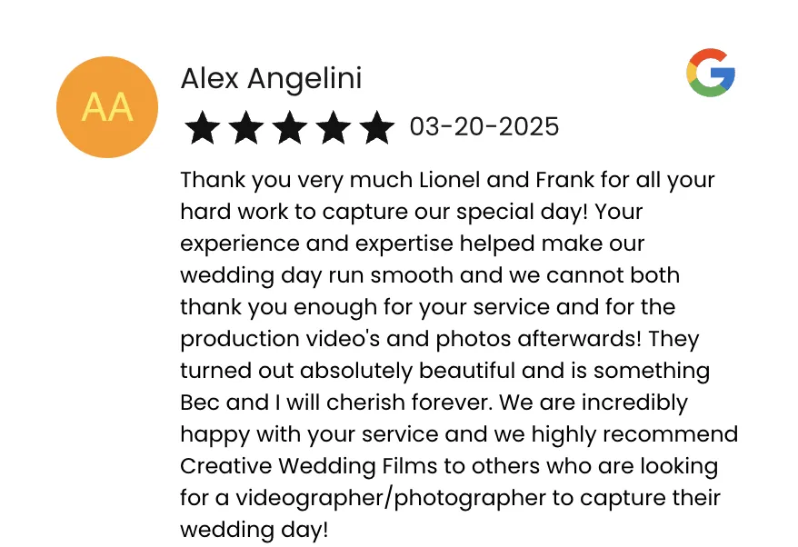 | Comparison Table | Creative Wedding Films | Other Video + Photo Studios | Friend-With-Camera |