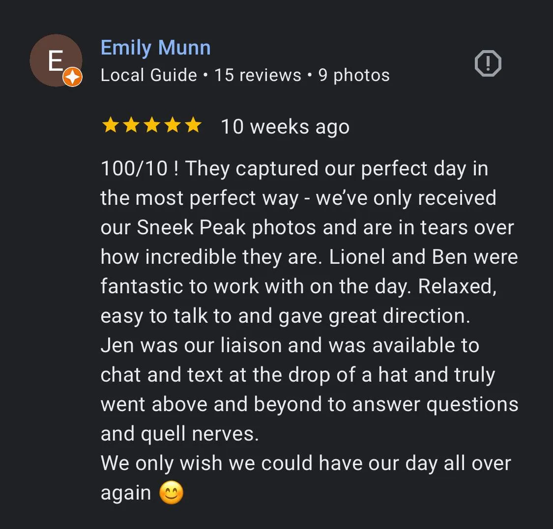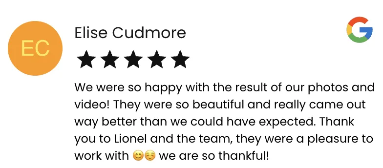 A team of 3 at your wedding (1 x videographer, 1 x photographer + 1 x content creator)